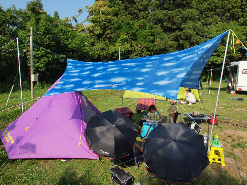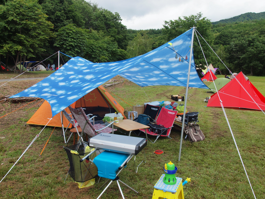 当日はロゴスのワンポールとアオゾラタープの組み合わせ。