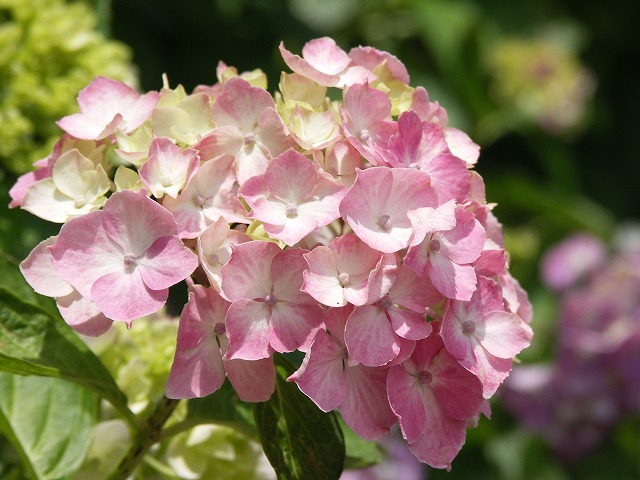 去年と比べると今年は展示している品種が増えているようで、普通のアジサイ・ガクアジサイに加え、花びらが小さいバラみたいになっている豪華なものも見受けられました。
