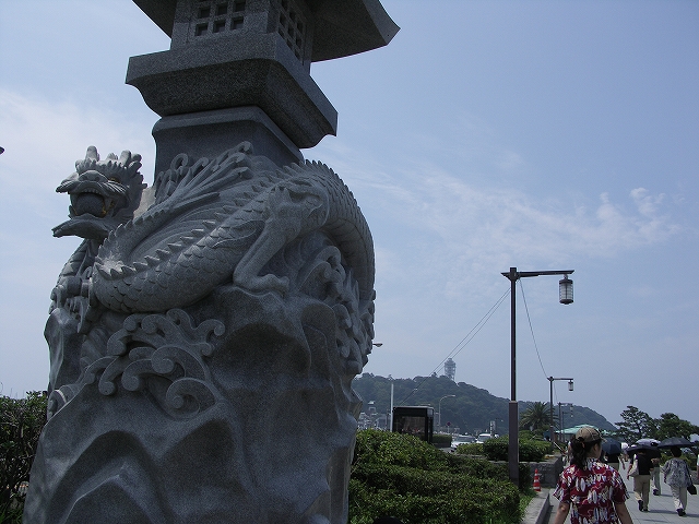 江ノ電で江の島駅に着いたら、暑いし海(波打ち際)で遊ばせようと思っていたが、思えば私は江ノ島神社って行った事がなく快獣クンも無かったので、