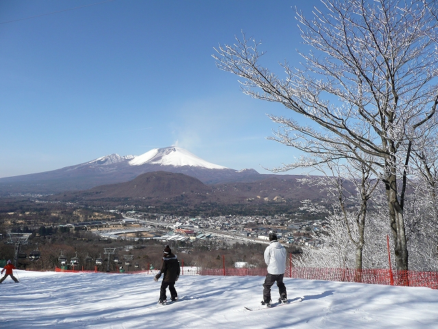 当日はリフトを昇ったら先日噴火した浅間山が見えた。