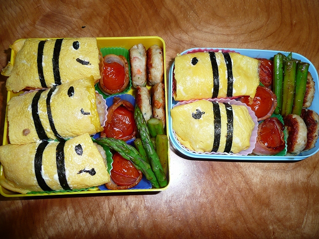 今日はお弁当の日♪ My日記 2009.03.13 快獣クン、大喜びおはようございます。今日は月に1度、保育園にお弁当を持っていく日です。ママは朝5時に起きて、がんばって作りました。こちらです。 可愛らしいお弁当ができました。これを見て快獣クンは大喜び。実は快獣クン、お弁当が待ち遠しくて朝5時半には起きていたようです。お蔭で早く起こされました。(笑)まぁでも早起きはいいことです。よかったね、快獣クン♪ ついでにパパ&ママのも作ってもらいました。こちらです。 ありがとう、ママ。