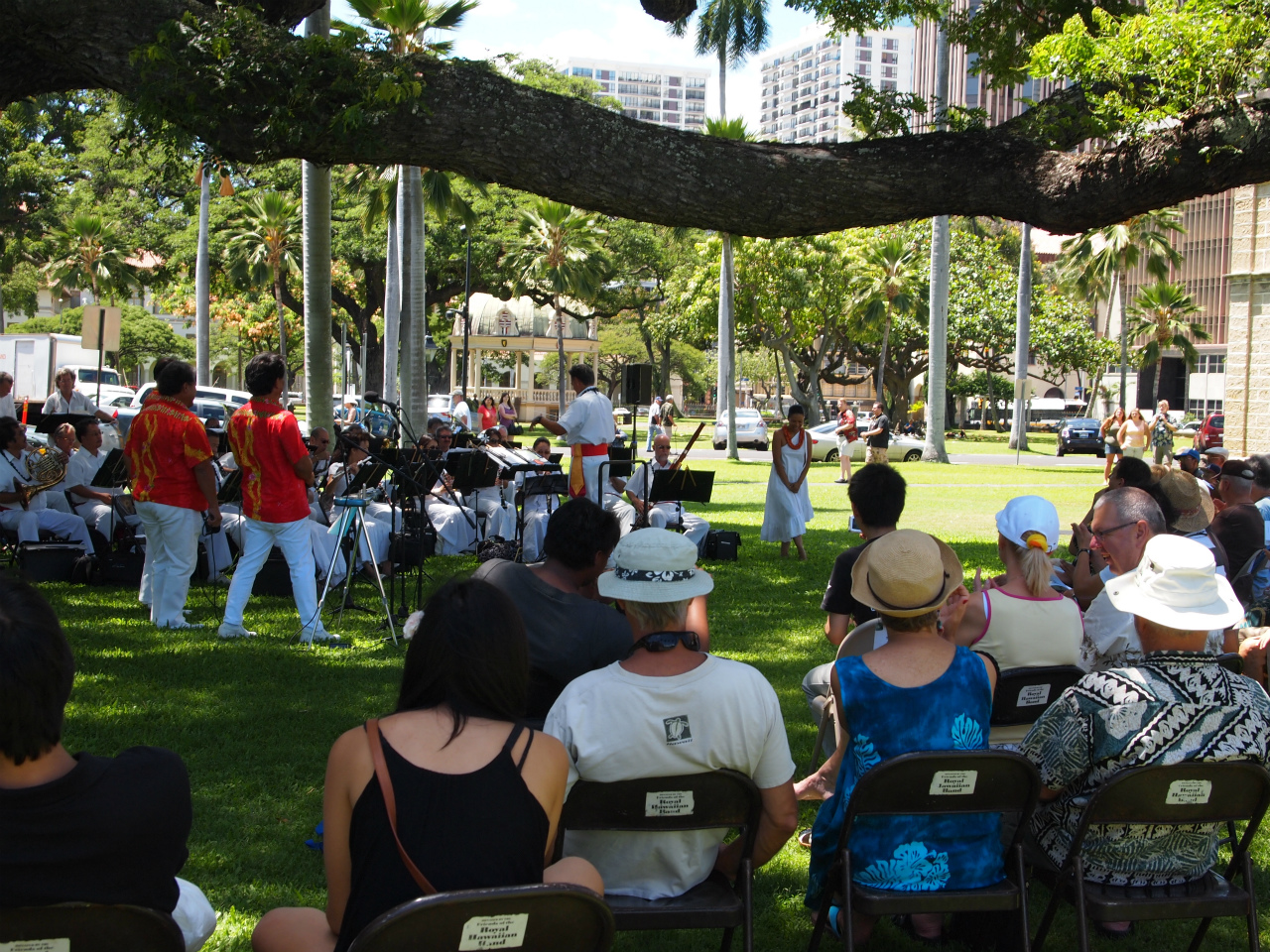 イオラニ宮殿の裏側では、演奏会が開かれており、日本の歌が演奏されていました。