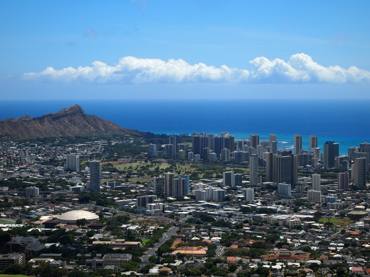 展望台から左側を見れば、ダイヤモンドヘッドが遠くに。