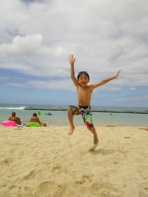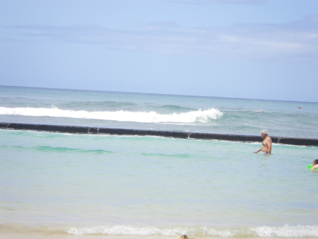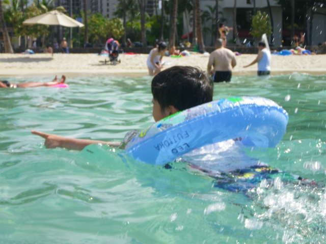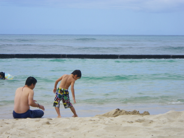 クヒオ・ビーチは堤防に囲まれており急な波が来ないので、小さなお子さん連れには遊びやすいところでした。