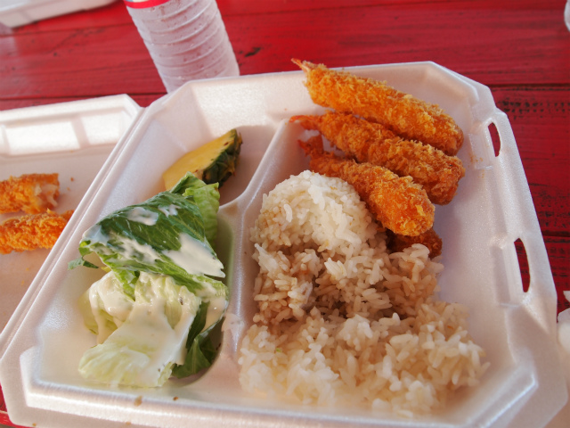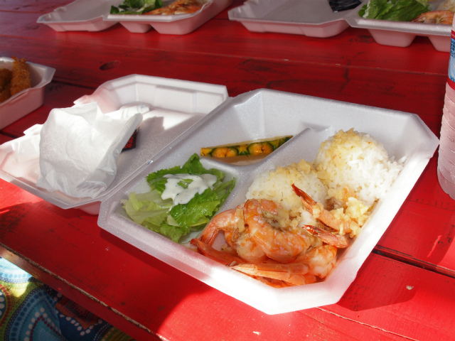 ノース先端近くのカフクで待望のガーリックシュリンプを食べました。