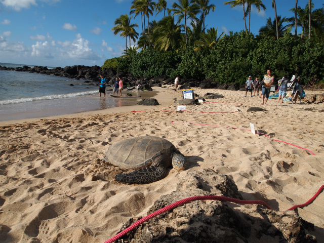 (カメはハワイの人にとって、幸運の象徴ですからね。)