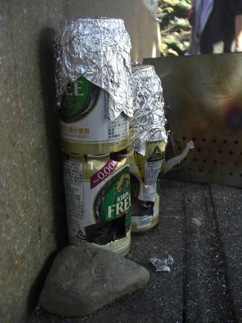 他には、空き缶でご飯を炊くことにチャレンジしたご家族が。