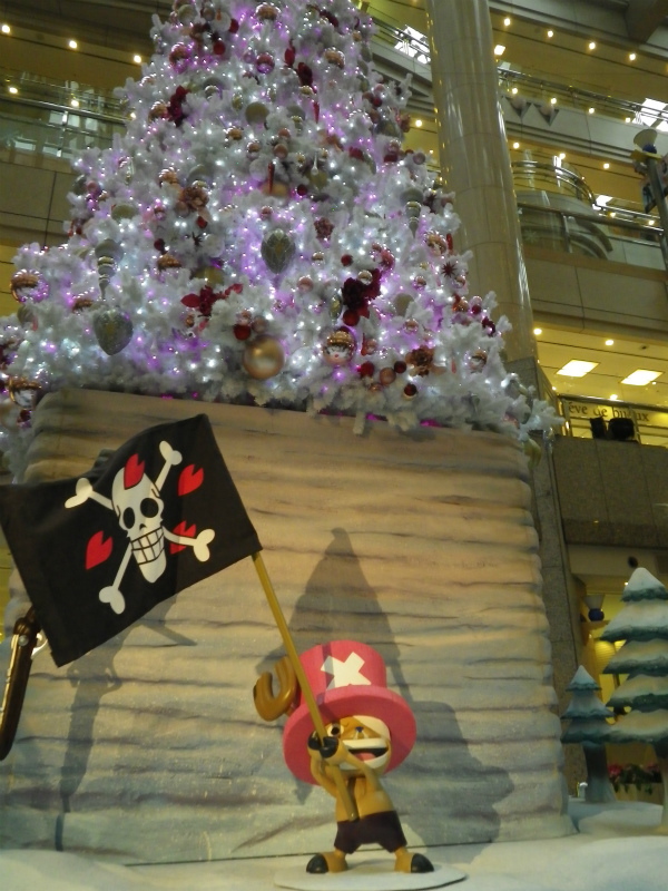 写真はランドマークプラザで展示してあったワンピースのチョッパーとクリスマスツリーです。