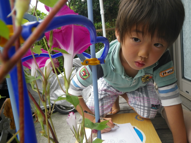 気が付けば快獣クン、夏休み突入です 三獣士ネタ 2012.07.22 ブログの更新は1か月半ぶりです。 ここ最近はFacebookに書き込んでいるせいか、こちらの書き込みが止まってました。 快獣クンは7/20で1学期が終わり、夏休みに入りました。 週末は夏休みの宿題(の1つ)である、アサガオの観察日記を書いていました。 他にも宿題はあるようです、 順調にこなしていって欲しいです。