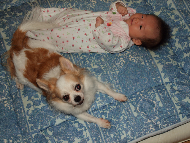 聖獣ちゃん、生後2か月半! 三獣士ネタ 2012.10.18 ずいぶん大きくなりました♪ 聖獣ちゃんも随分ふっくらしてきました。 首のチカラも付いてきました! お風呂でもノビノビやってます♪ 猛獣クンと一緒でも大丈夫! 快獣クンは聖獣ちゃんが大好きです♪ でも、にゃんこはなかなか聖獣ちゃんに近づきません。。。 仲良くなる日は、来るのか?? 乞う、ご期待! そういえば・・・ 聖獣ちゃんは、体重が約4.5キロになりました。 あっという間に、猛獣クンとにゃんこより重くなりましたね♪ 日中抱っこしてるママは大変ですw